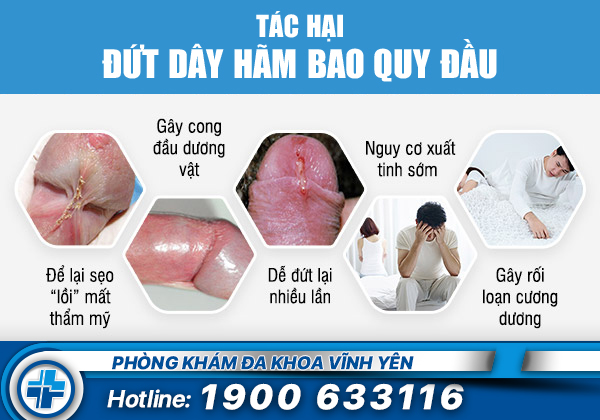 - Nếu không xử lý dây hãm bao quy đầu bị đứt sớm, người bệnh có thể bị viêm dây hãm bao quy đầu, viêm loét sâu vào bao quy đầu. Tạo cơ hội cho vi khuẩn xâm nhập gây bệnh viêm nhiễm nam khoa như viêm bao quy đầu.