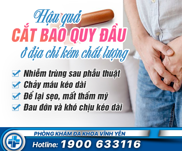Mặc dù thủ thuật cắt bao quy đầu không quá phức tạp. Nhưng khi thực hiện ở địa chỉ kém chất lượng, hoạt động “chui” có thể dẫn đến nhiều hậu quả nghiêm trọng như: