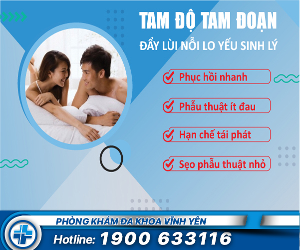 Đến với Phòng khám đa khoa Vĩnh Yên, nam giới được chữa trị bệnh yếu sinh lý hiệu quả bằng phương pháp tam độ tam đoạn.