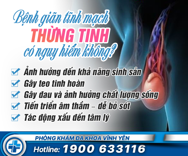Giãn tĩnh mạch thừng tinh không trực tiếp nguy hiểm đến tính mạng. Tuy nhiên, nam giới không thể xem nhẹ bởi bệnh có ảnh hưởng nghiêm trọng đến khả năng sinh sản và sức khỏe sinh lý. Bệnh giãn tĩnh mạch thừng tinh có...