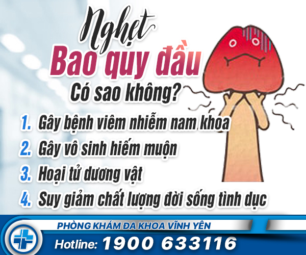 Nghẹt bao quy đầu là tình trạng bao quy đầu bị tuột xuống nhưng không thể kéo trở lại, khiến quy đầu bị siết chặt, sưng đau và tắc nghẽn máu. Nếu không xử lý kịp thời, có thể dẫn đến hoại tử dương vật, ảnh hưởng nghiêm trọng đến sức khỏe sinh sản và chức năng tình dục của nam giới. Cùng Chuyên khoa nam khoa – Phòng khám Đa khoa Vĩnh Yên tìm hiểu nguyên nhân, dấu hiệu nhận biết và cách xử lý nghẹt bao quy đầu an toàn, hiệu quả trong bài viết dưới đây.